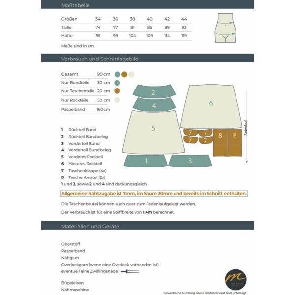 Der Schnitt enthält die Größen 34 bis 44. Eine umfangreiche Nähanleitung findest Du jederzeit unter: